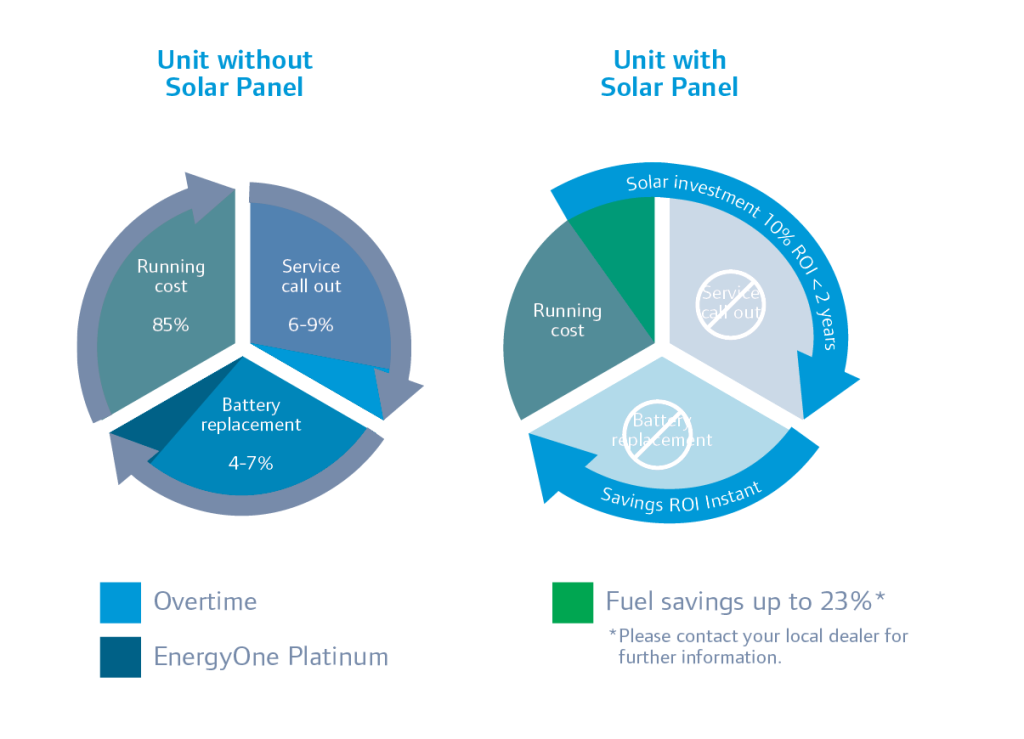 Thermo King solar panels come in various sizes and capacities.